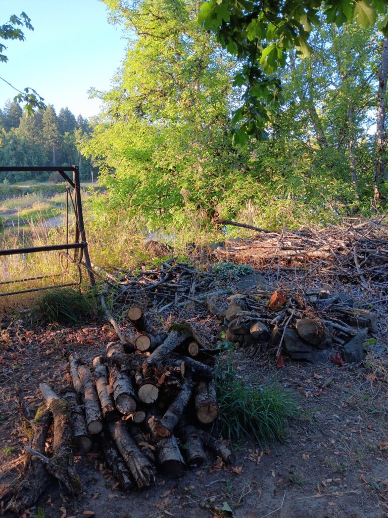 Clearing usually includes some cutting/raking of blackberries to get to the sticks we are piling up to burn