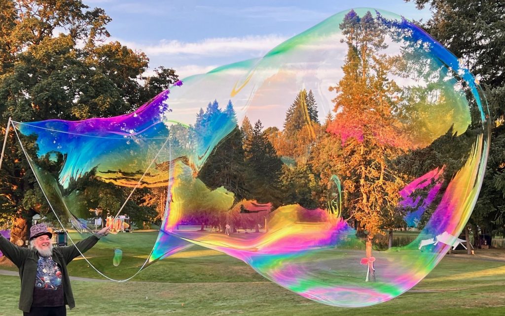 Winter can be great for bubbles! We can have a fire and host birthdays and such at the farm for weather-hardy folks 🙂 Sadly, our lack of a bathroom for the public is still an issue to overcome. We have one “under construction”, but it is one of those everlasting “Kelly projects” that will take quite a while unless we get a volunteer or two that want to help make it happen quicker. Big Bubbler can always travel to your local park or lawn for a party, but he does like bubbling here at Wet Rock Gardens!