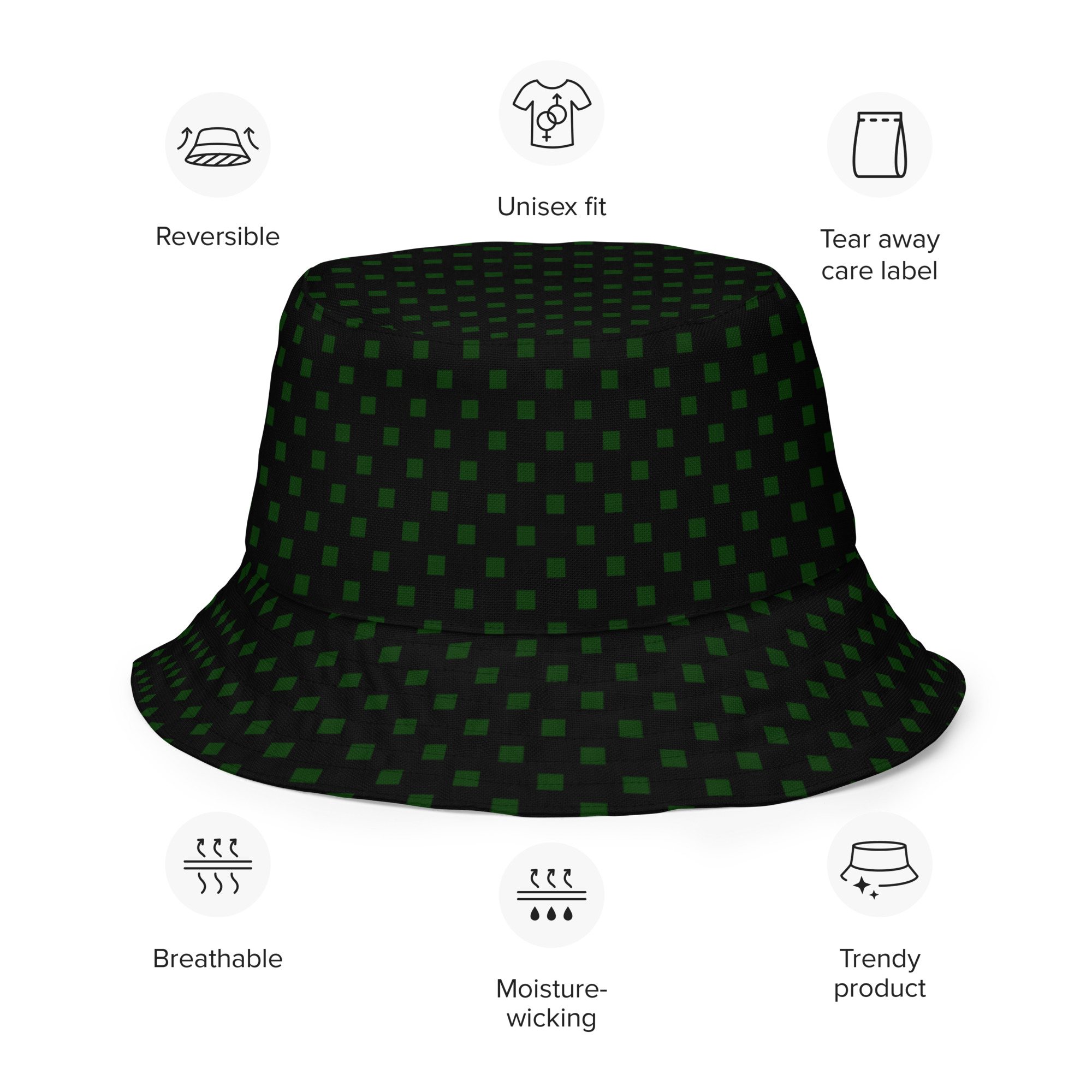 This reversible bucket hat can be worn on both sides, making it easy to match with different outfits. Made of breathable premium fabric, this hat will become your go-to streetwear accessory. Black on one side and Black with green square dots on the other side. Purple WetRock logo on front of black hat and on rim of black and green side. can be turned any direction. Size does NOT seem to “run small” at all.