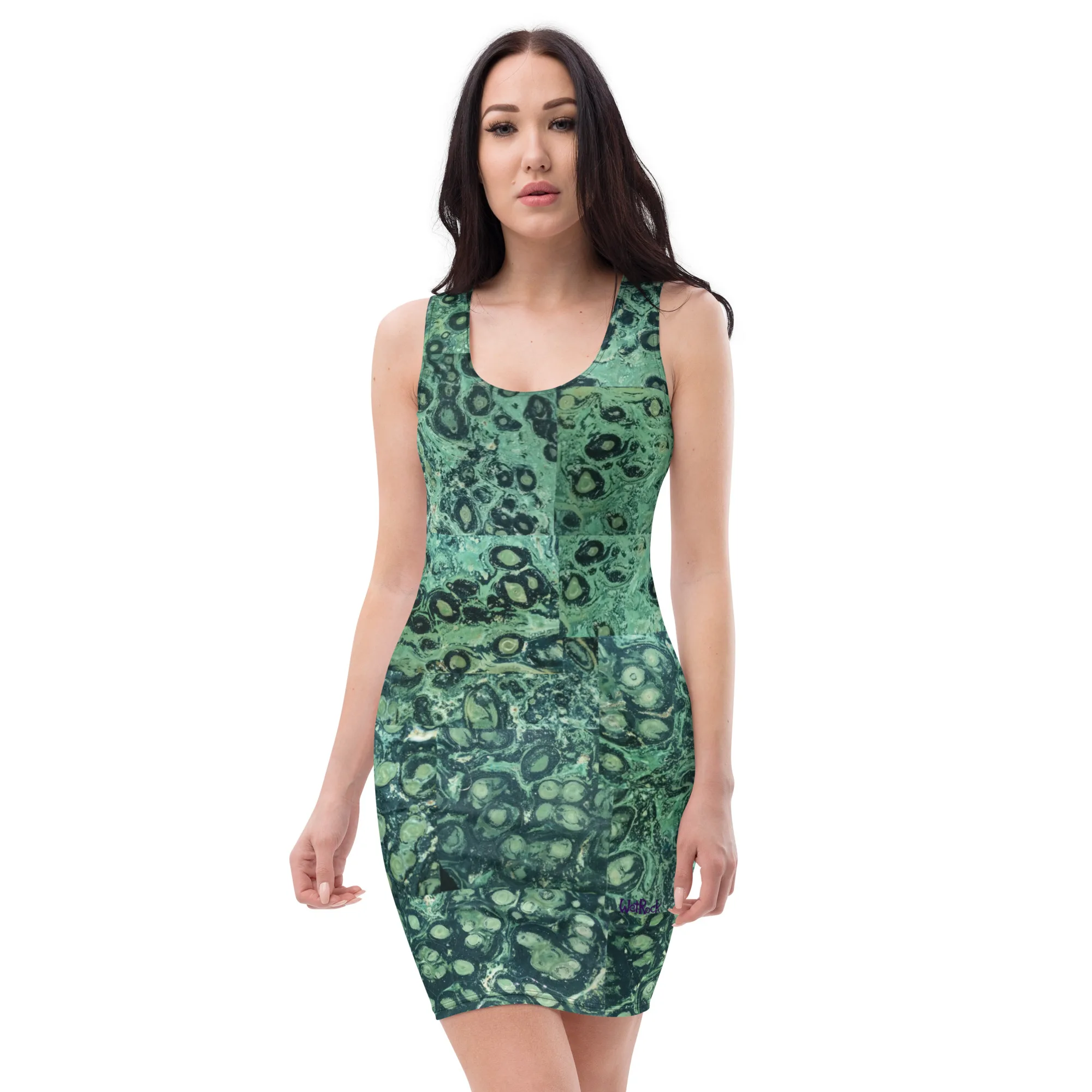 Rock a unique look and make a statement in this all-over-rock-slice printed, fitted dress. People will want to get closer and stare at you in this fabulous Dress. Rock Their world 🙂 Rock Photos for this unusual dress were taken at Wet Rock Gardens Flower Farm in Springfield, Oregon.