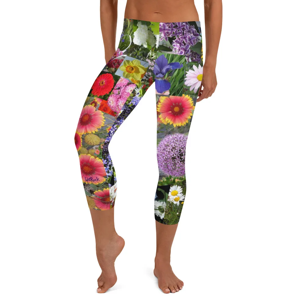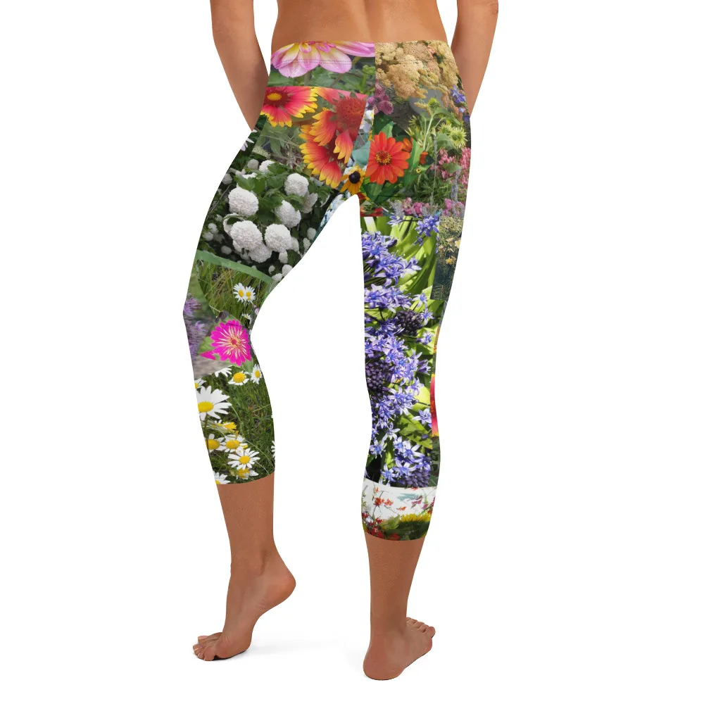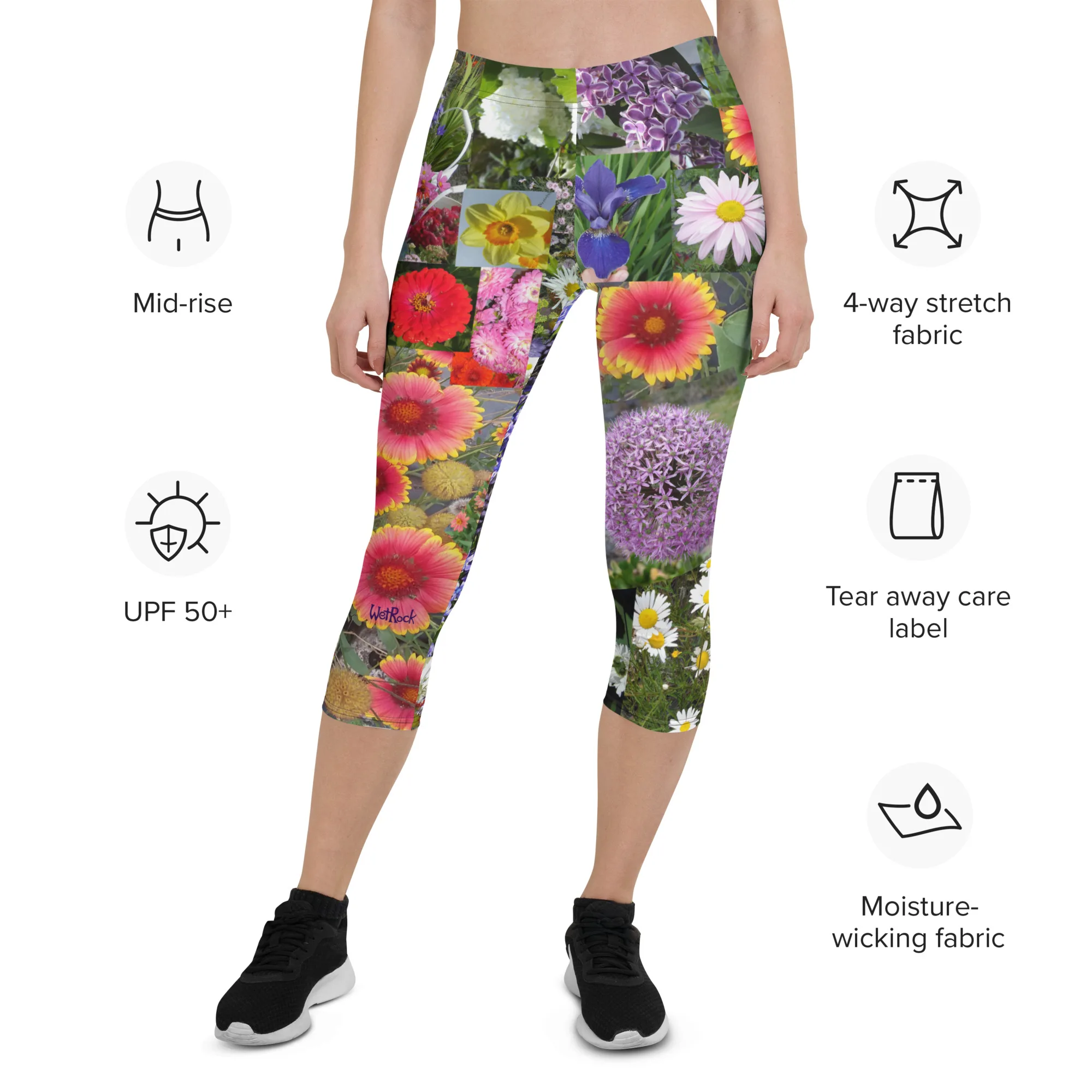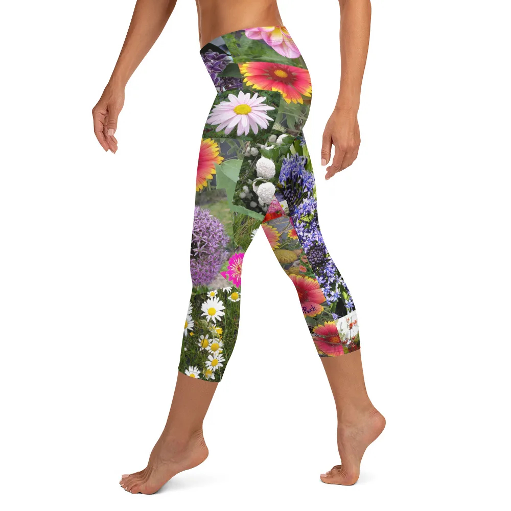 Super soft and comfortable capri leggings. Flower photos taken at Wet Rock Gardens flower farm in Springfield, Oregon