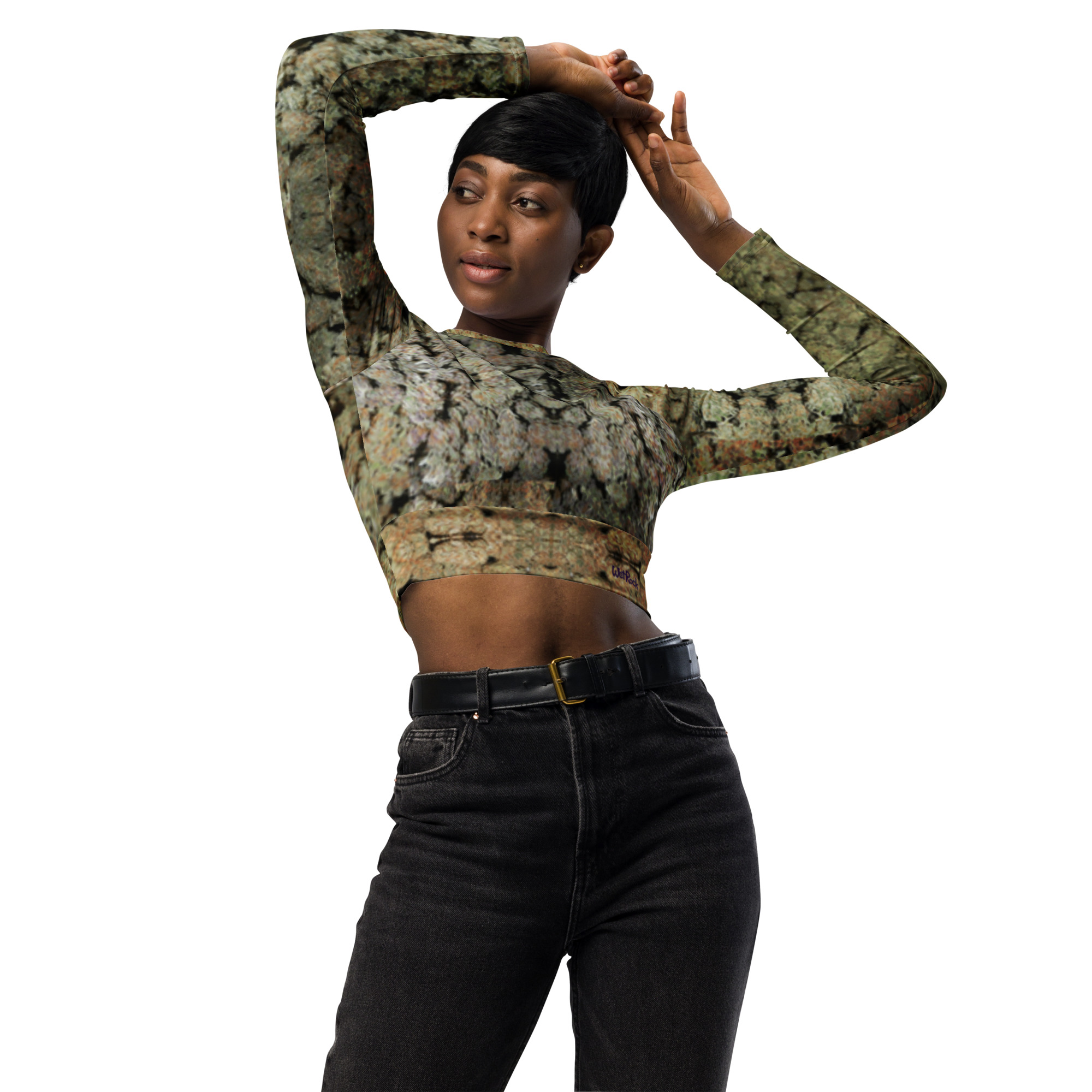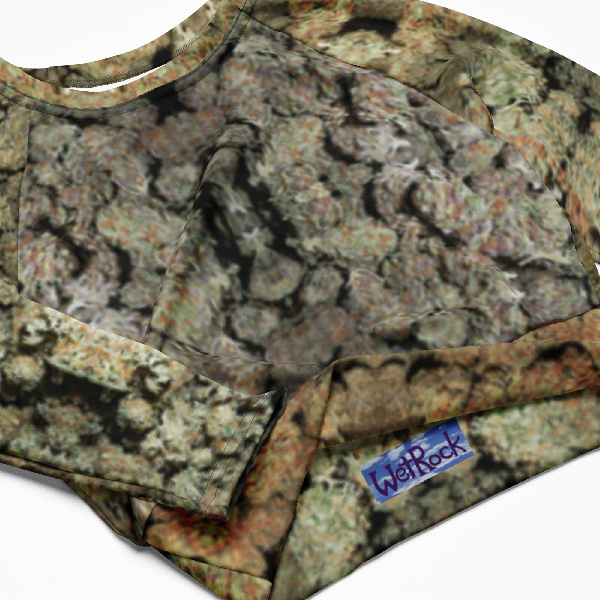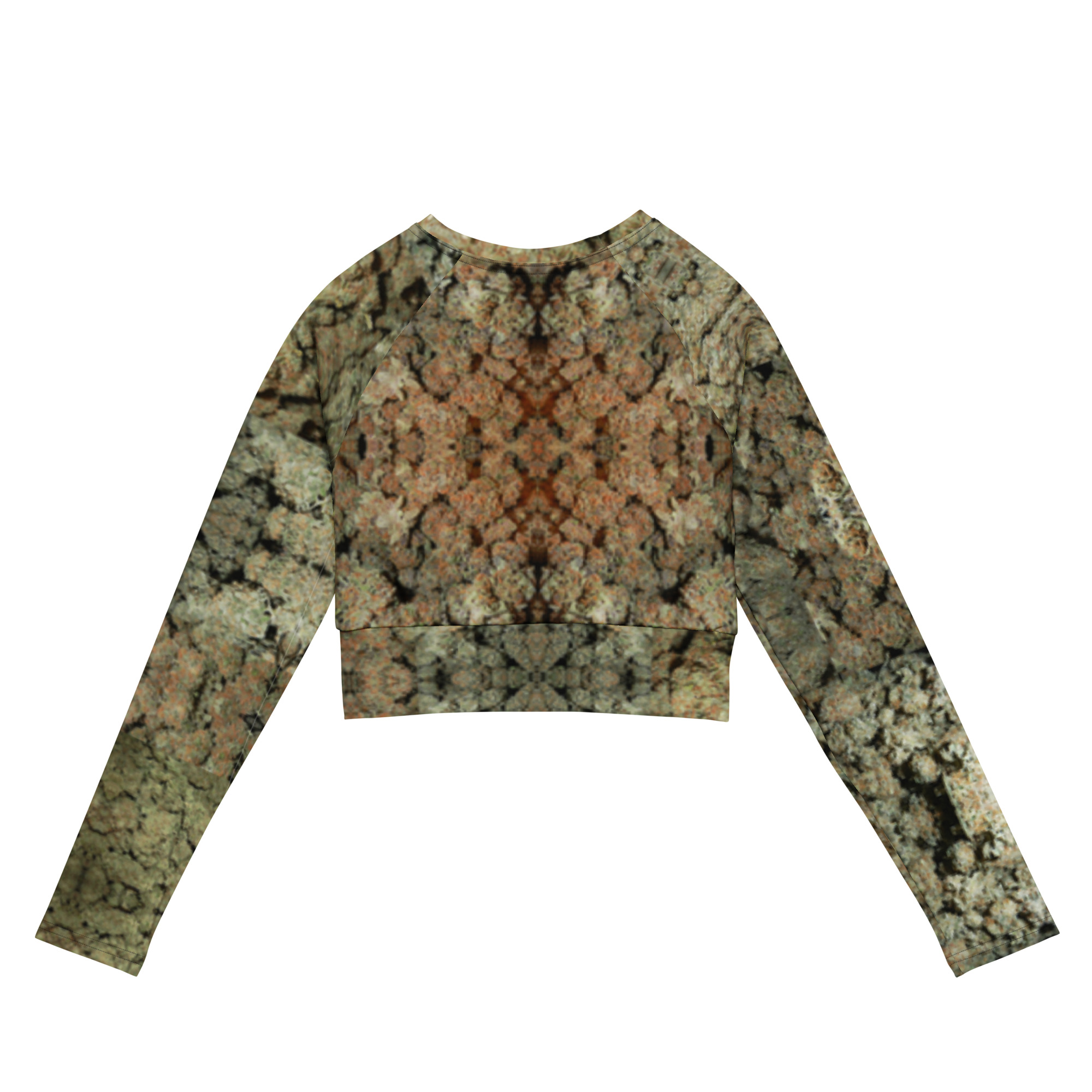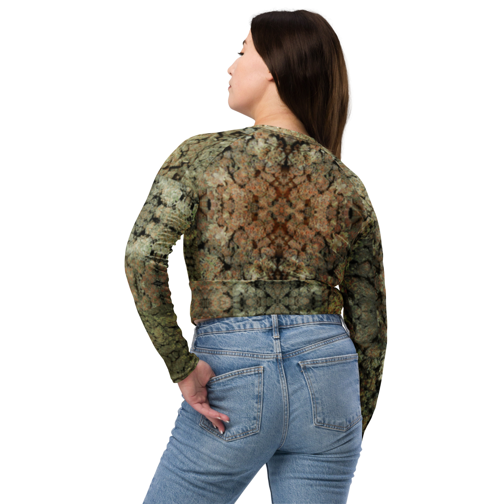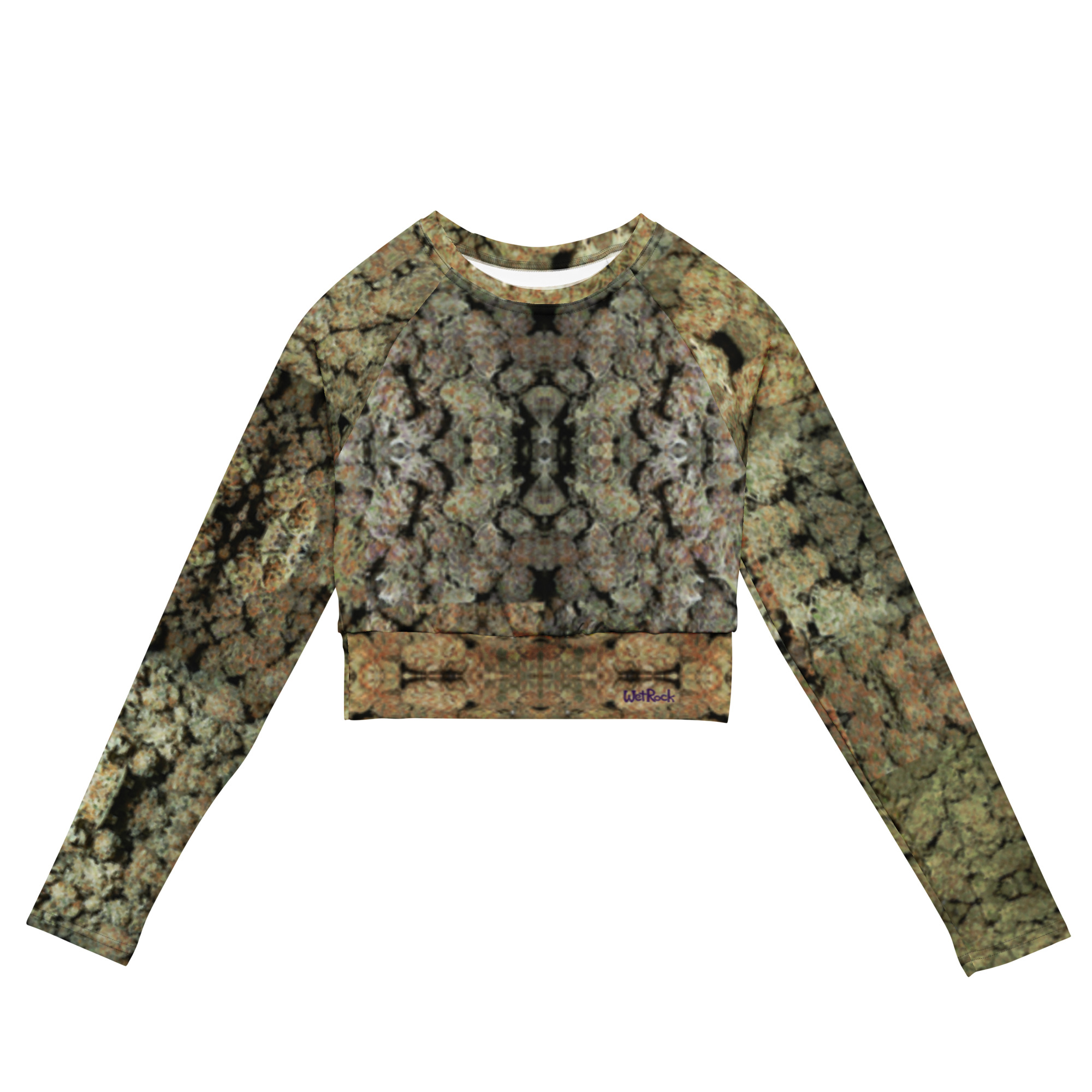 Show off your love of top-shelf green buds! This attention-getting Mirror-Image Marijuana-Flower-Art long-sleeve crop top is made of recycled polyester and elastane, making it an eco-friendly choice for various outfits. The crop top has a wide, double-layered waistline band for a comfortable fit.