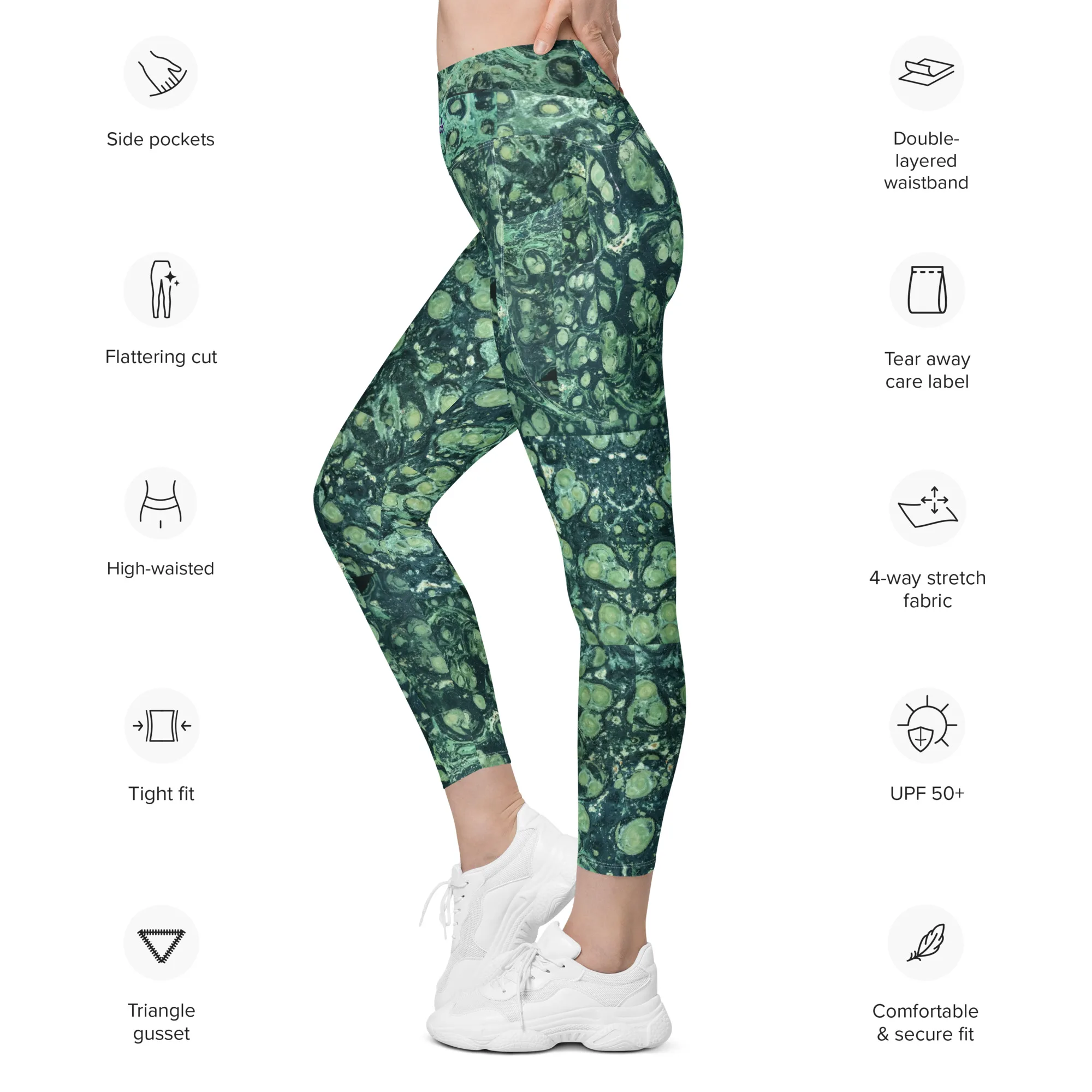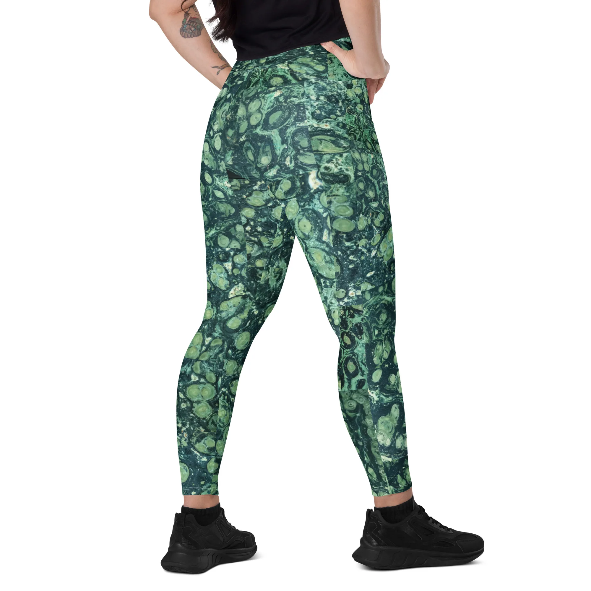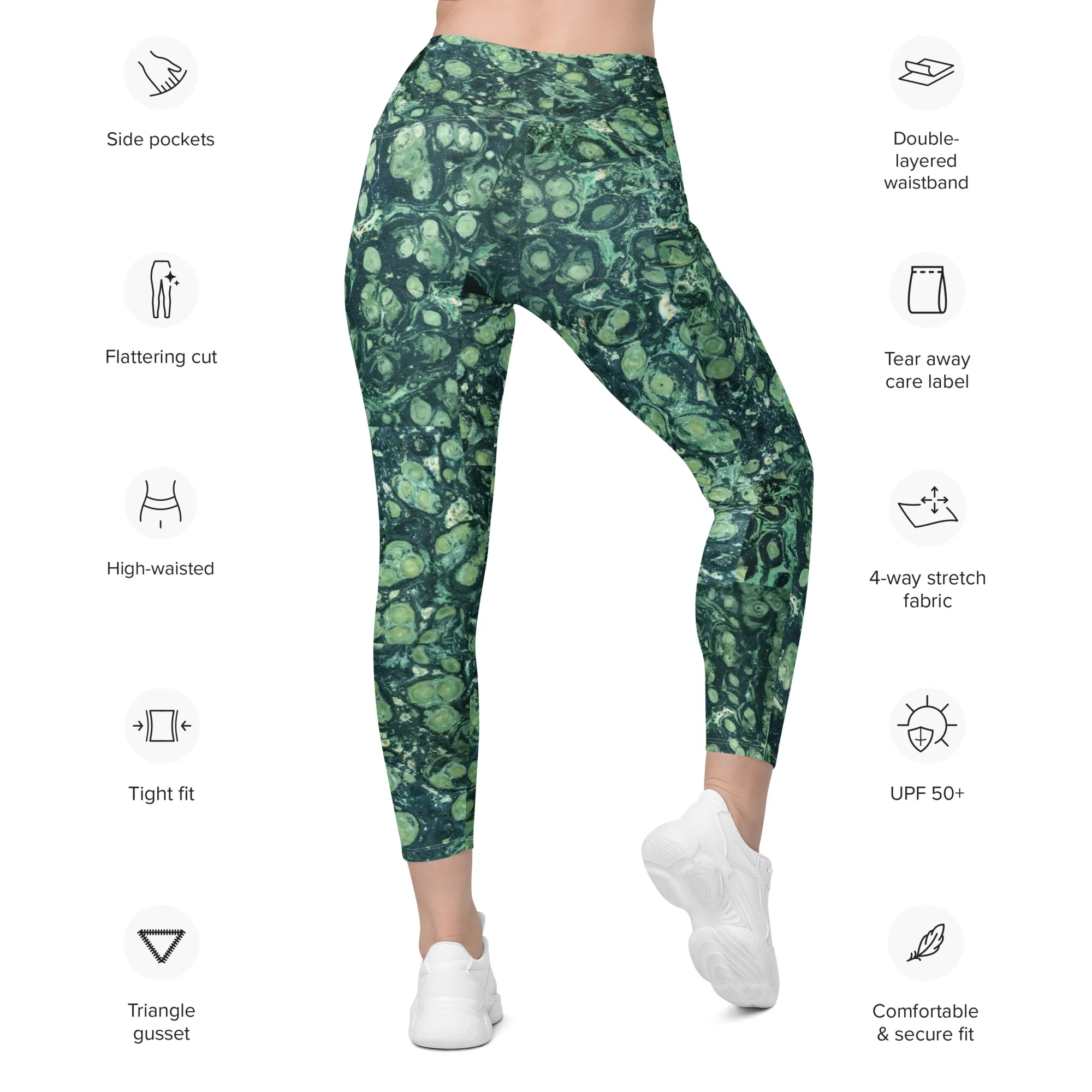 Rock-slice photos cover this unique pair of pocket leggings. Featuring a classic, high-waisted cut, exceptional comfort, and two practical side pockets, these semi-compression leggings will support you during workouts and casual strolls around the city. Get yours now! Rock-slice Photos were taken at Wet Rock Gardens Flower Farm in Springfield, Oregon.