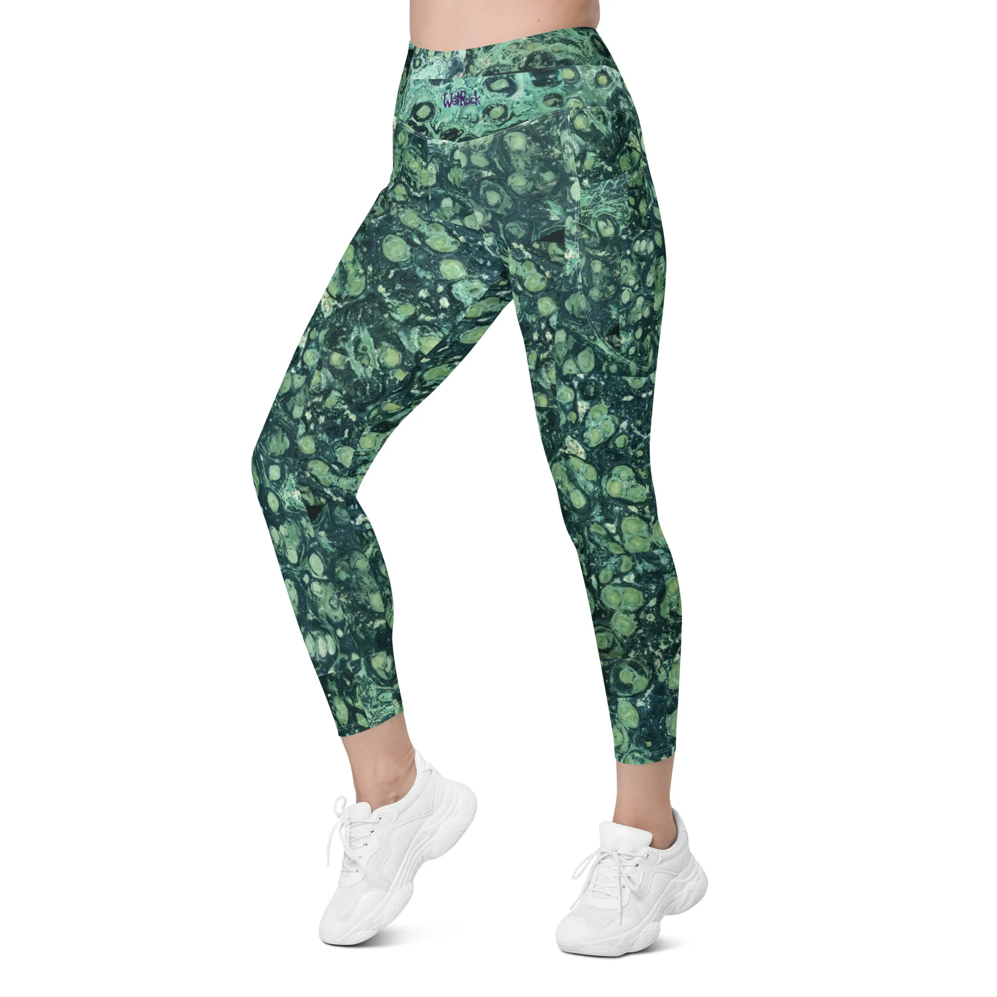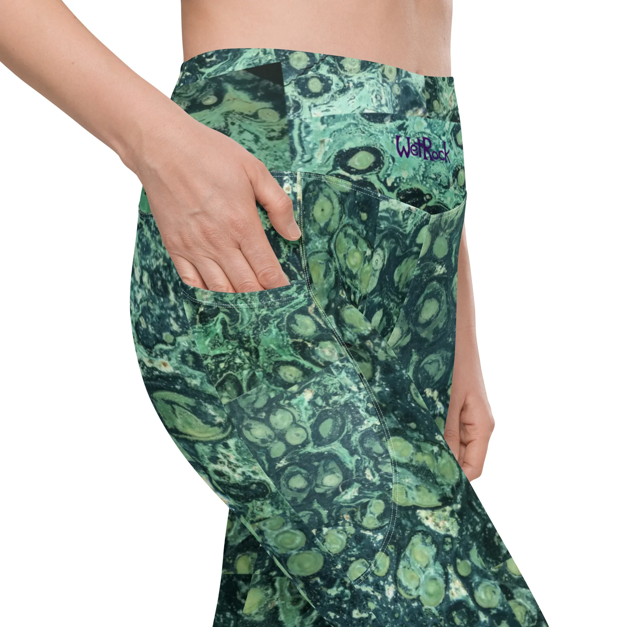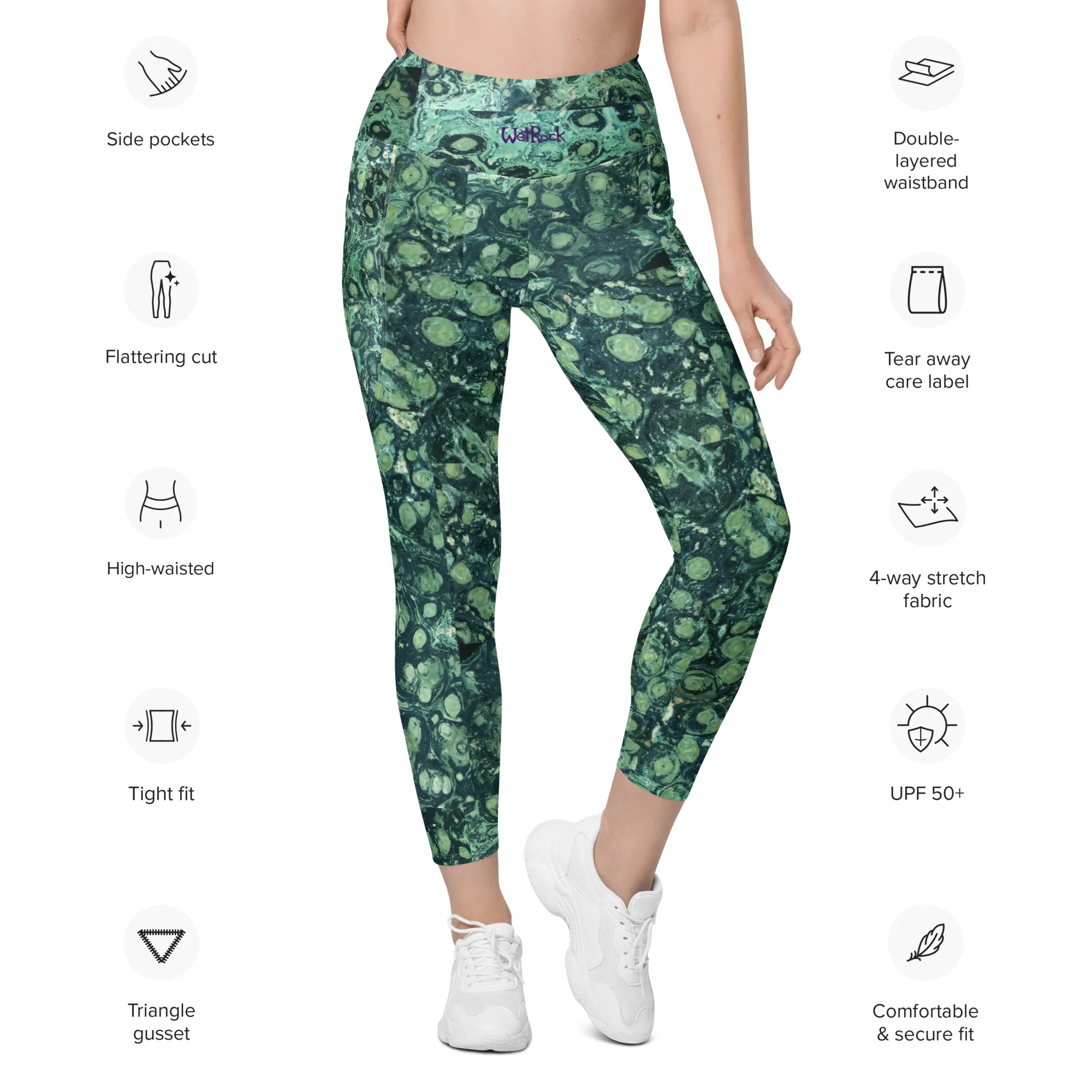 Rock-slice photos cover this unique pair of pocket leggings. Featuring a classic, high-waisted cut, exceptional comfort, and two practical side pockets, these semi-compression leggings will support you during workouts and casual strolls around the city. Get yours now! Rock-slice Photos were taken at Wet Rock Gardens Flower Farm in Springfield, Oregon.