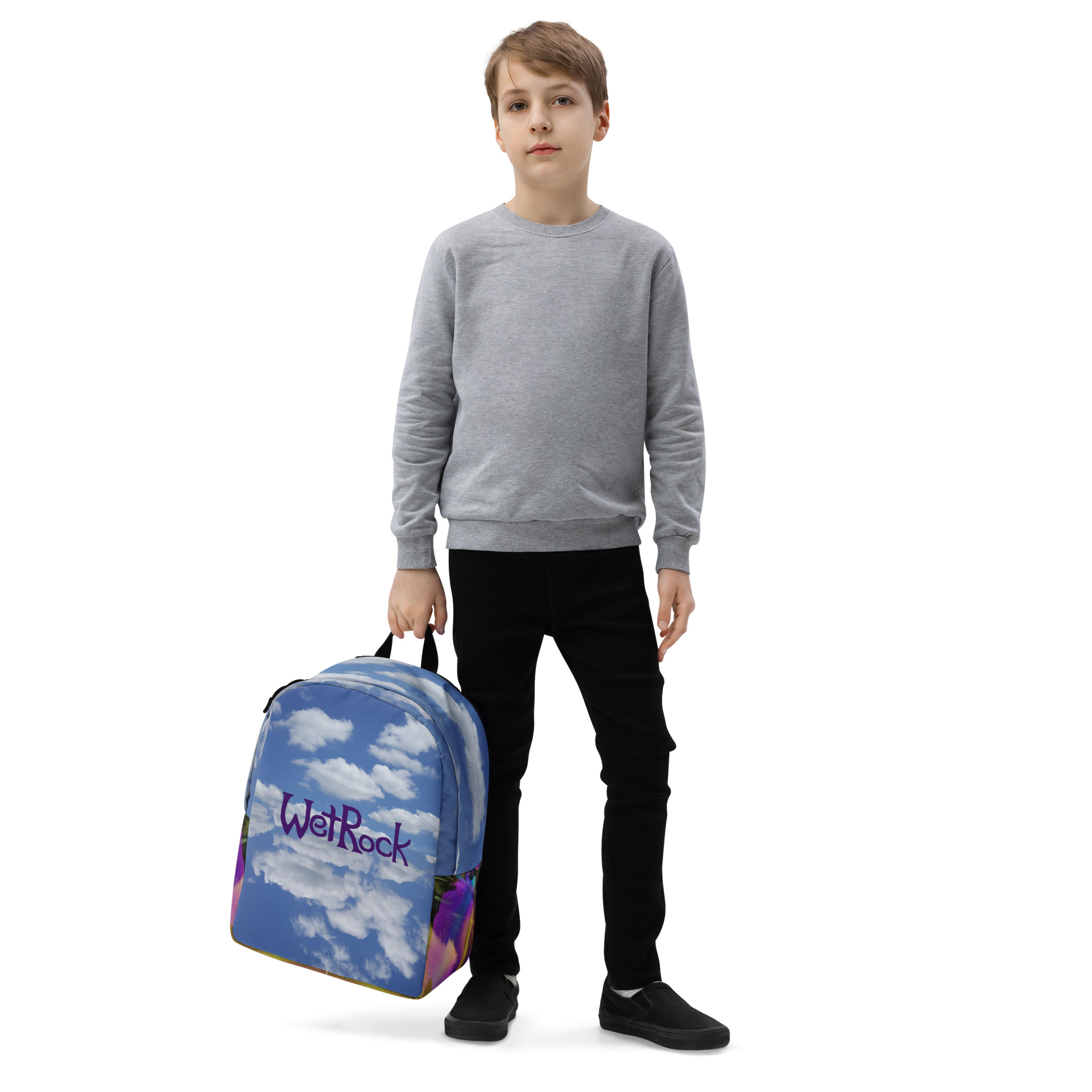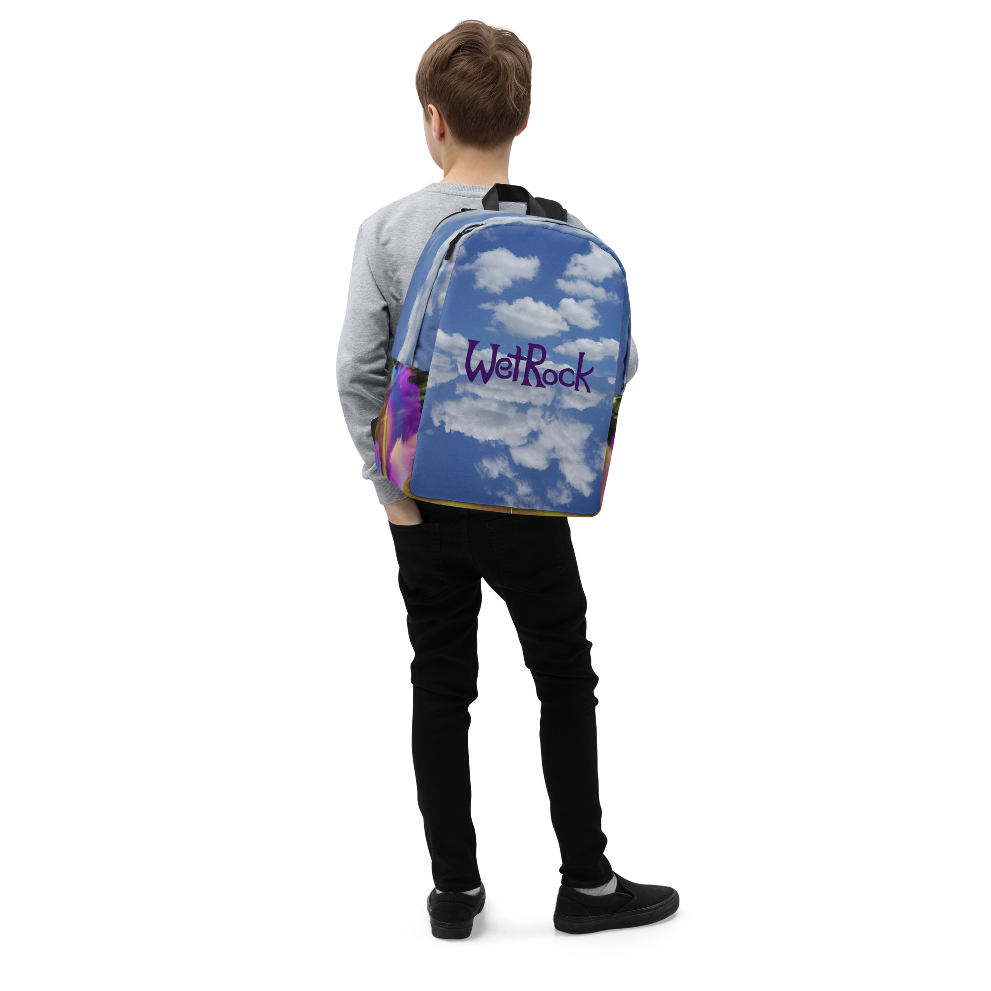 Wet Rock’s larger sized (5.3 Gallon capacity) backpack is great for daily use or sports activities! It has a spacious inside compartment (with a pocket for your laptop), and a hidden back pocket for safekeeping your most valuable items. Complex soap-bubble print on the bottom hides some dirt/stains white clouds would have emphasized.