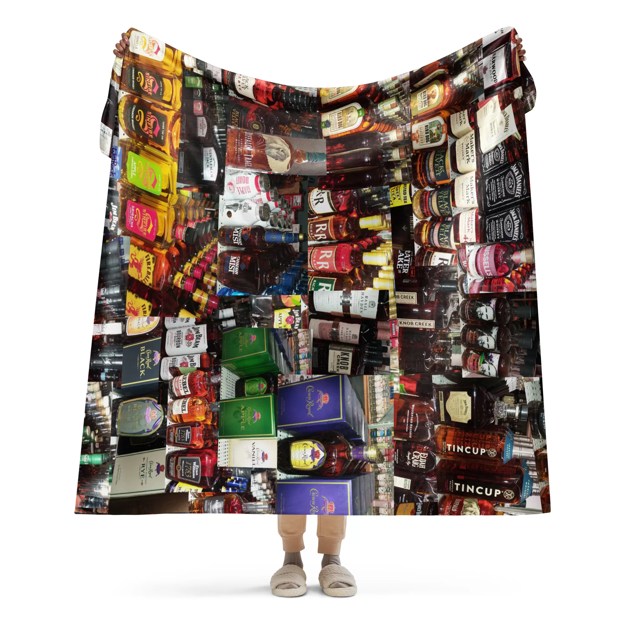 This mosaic sherpa blanket combines a plushie feel with exceptional softness, making it the ultimate comfort companion. Perfect for daily use while lounging on the couch, snuggling up on chilly evenings, or styling your room—this blanket offers unmatched coziness and warmth. The fuzzy fabric may make the booze bottle details hard to see. For the wall you might get a clearer print with our Whiskey Themed Flag: https://wetrock.com/WRGwp/product/whiskey-theme-flag/
